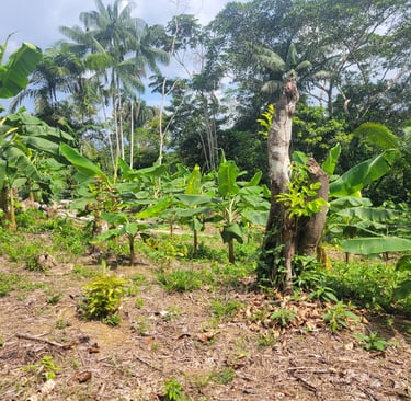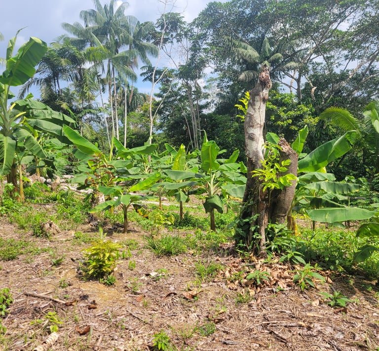 à l'utilisation du minimum d'empreinte écologique (récupération d'eau de pluie, l'utilisation de la nourriture locale et des produits locaux, gestion des déchets en respectant la forêt, culture des champs avec l'agroforesterie, etc)